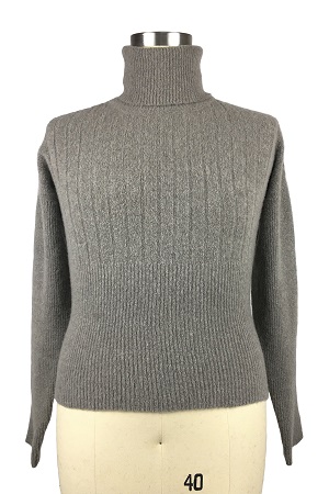 SOLID CABLE STITCHES FUNCTIONA NECK SWEATER